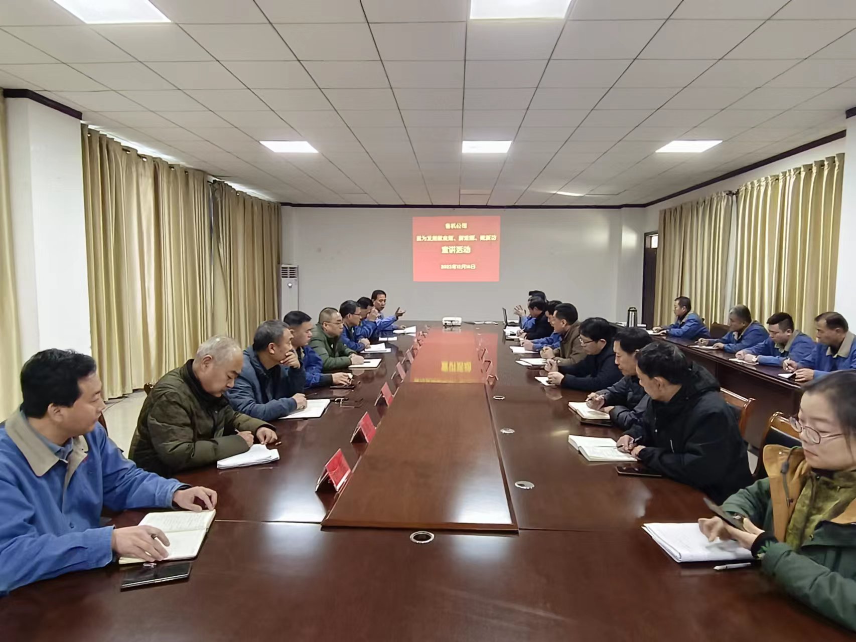 宣講會上,公司黨委書記、董事長秦令坦向廣大黨員發(fā)出倡議,要求全體黨員要積極認(rèn)領(lǐng)重點難點任務(wù),以釘釘子精神立足崗位,以工匠精神開拓創(chuàng)新,踴躍為企業(yè)發(fā)展獻(xiàn)良策、解難題,切實把黨建活力轉(zhuǎn)化為市場發(fā)展活力和為客戶服務(wù)的不竭動力。要堅持結(jié)果導(dǎo)向,以全年目標(biāo)及重點工作為中心,倒推進(jìn)度,在公司上下形成踔厲奮發(fā),逆勢強(qiáng)行的態(tài)勢,激勵全員分秒必爭趕進(jìn)度、披荊斬棘沖業(yè)績,推動提質(zhì)增效,確保高質(zhì)量完成全年目標(biāo)任務(wù)。同時結(jié)合公司實際按照冬季“四防”要求,對公司安全工作進(jìn)一步做了強(qiáng)調(diào):各部門要以冬季四防為重點,全面抓好春節(jié)前的安全生產(chǎn)工作。