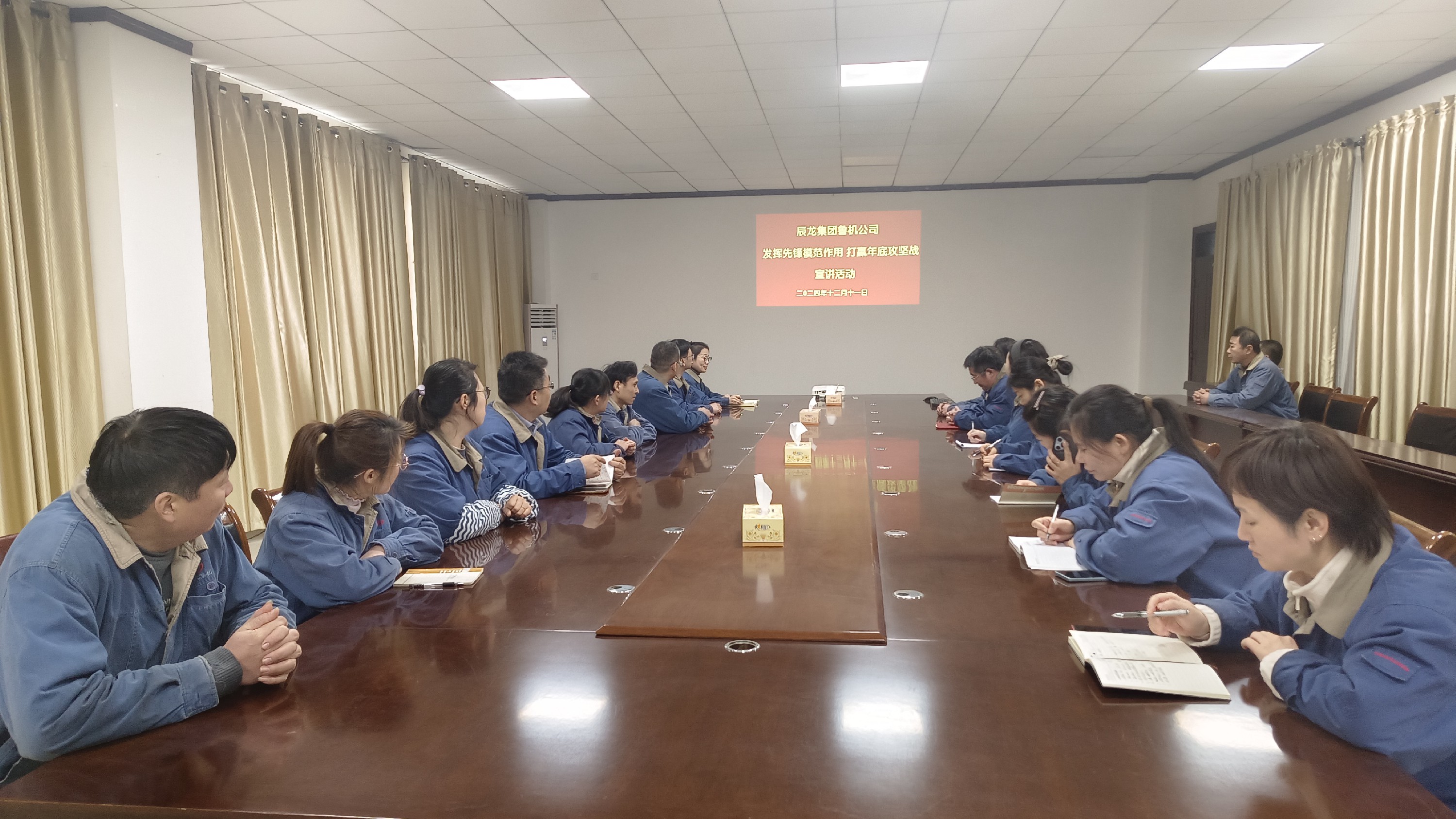 12月11日下午,魯機(jī)公司開(kāi)展“發(fā)揮先鋒模范作用 打贏年底攻堅(jiān)戰(zhàn)”主題宣講活動(dòng)。裝配車間黨員及在家的銷售人員19人參加。