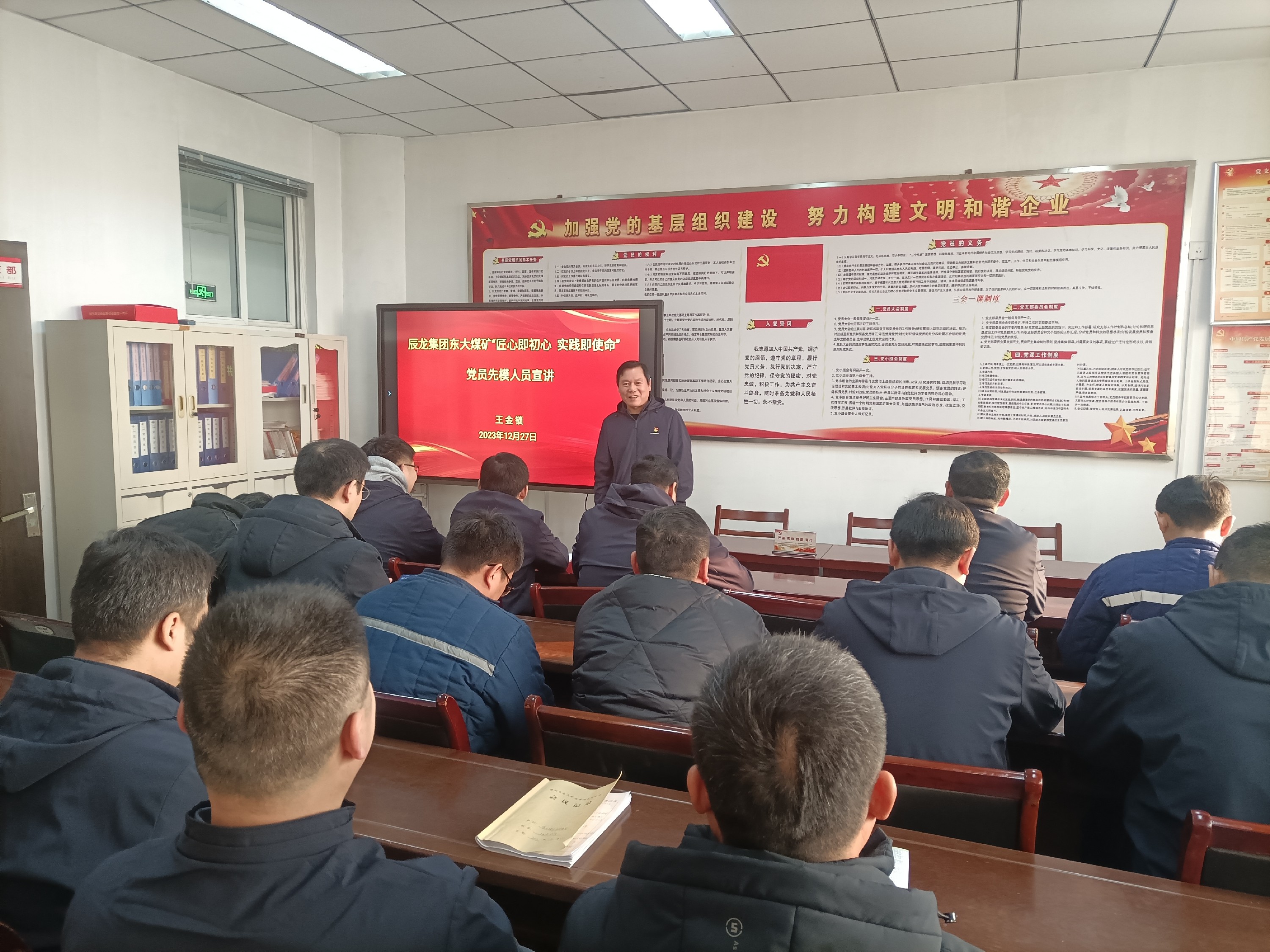 12月27日,辰龍集團東大煤礦生產(chǎn)調(diào)度黨支部開展先模黨員宣講活動。