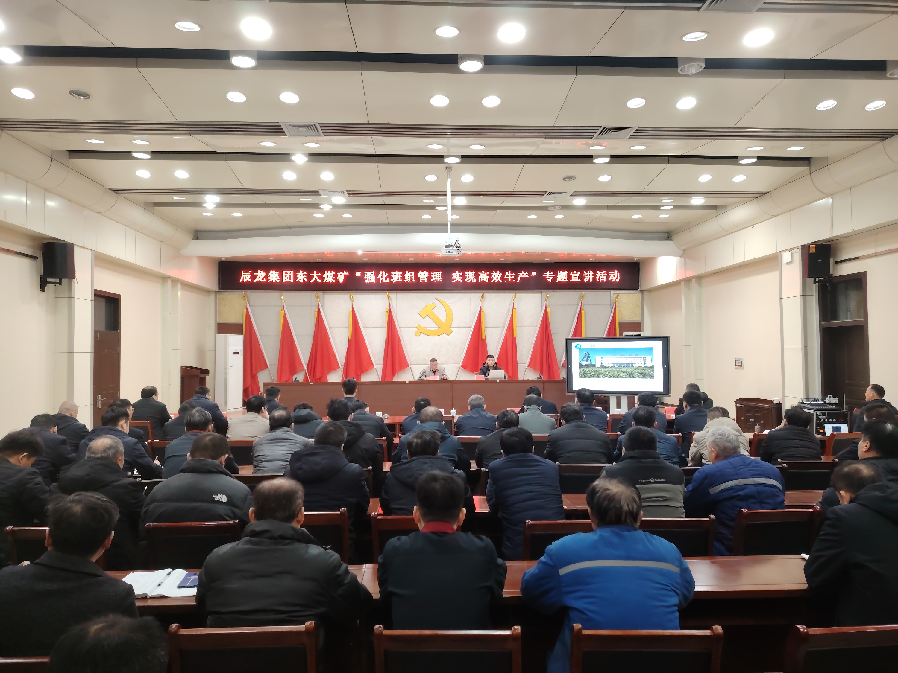 2月24日上午,東大煤礦舉辦“強(qiáng)化班組管理 實(shí)現(xiàn)高效生產(chǎn)”專(zhuān)題宣講活動(dòng)。煤礦班子成員,各專(zhuān)業(yè)副總工程師,一二線區(qū)隊(duì)、科室負(fù)責(zé)人,后勤經(jīng)營(yíng)部室負(fù)責(zé)人,一二線工區(qū)班組長(zhǎng)100余人參加。